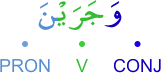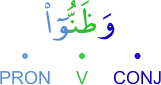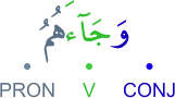 CONJ – prefixed conjunction wa (and) V – 3rd person feminine plural perfect verb PRON – subject pronoun الواو عاطفة فعل ماض والنون ضمير متصل في محل رفع فاعل