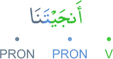 V – 2nd person masculine singular (form IV) perfect verb PRON – subject pronoun PRON – 1st person plural object pronoun فعل ماض والتاء ضمير متصل في محل رفع فاعل و«نا» ضمير متصل في محل نصب مفعول به