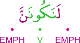 EMPH – emphatic prefix lām V – 1st person plural imperfect verb EMPH – emphatic suffix nūn اللام لام التوكيد فعل مضارع والنون للتوكيد