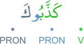 [] [KZ̃B] [GWL] [] [AML] [] [AML] [] [BRÆ] [] [AML] [] [BRÆ] [] [AML] WÎN KZ̃BWK FGL LY AMLY WLKM AMLKM ǼNTM BRYÙWN MMÆ ǼAML WǼNÆ BRYÙ MMÆ TAMLWN ve in keƶƶebūke feḳul lī ǎmelī velekum ǎmelukum entum berīūne mimmā eǎ'melu ve enā berī'un mimmā teǎ'melūne وإن كذبوك فقل لي عملي ولكم عملكم أنتم بريئون مما أعمل وأنا بريء مما تعملون [] [ك ذ ب] [ق و ل] [] [ع م ل] [] [ع م ل] [] [ب ر ا] [] [ع م ل] [] [ب ر ا] [] [ع م ل]