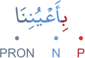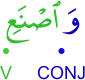 [ṦNA] [FLK] [AYN] [WḪY] [] [ḢŦB] [] [] [ƵLM] [] [ĞRG] WÆṦNA ÆLFLK BǼAYNNÆ WWḪYNÆ WLÆ TḢÆŦBNY FY ÆLZ̃YN ƵLMWÆ ÎNHM MĞRGWN veSneǐ l-fulke bieǎ'yuninā ve veHyinā ve lā tuḣāTibnī fī elleƶīne Zelemū innehum muğraḳūne واصنع الفلك بأعيننا ووحينا ولا تخاطبني في الذين ظلموا إنهم مغرقون [ص ن ع] [ف ل ك] [ع ي ن] [و ح ي] [] [خ ط ب] [] [] [ظ ل م] [] [غ ر ق]