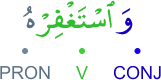 CONJ – prefixed conjunction wa (and) V – 2nd person masculine singular (form X) imperative verb PRON – 3rd person masculine singular object pronoun الواو عاطفة فعل أمر والهاء ضمير متصل في محل نصب مفعول به