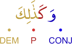 CONJ – prefixed conjunction wa (and) V – 3rd person masculine singular perfect verb الواو عاطفة فعل ماض