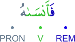 [GWL] [] [ƵNN] [] [NCW] [] [Z̃KR] [AND̃] [RBB] [NSY] [ŞŦN] [Z̃KR] [RBB] [LBS̃] [] [SCN] [BŽA] [SNW] WGÆL LLZ̃Y ƵN ǼNH NÆC MNHMÆ ÆZ̃KRNY AND̃ RBK FǼNSÆH ÆLŞYŦÆN Z̃KR RBH FLBS̃ FY ÆLSCN BŽA SNYN ve ḳāle lilleƶī Zenne ennehu nācin minhumā ƶkurnī ǐnde rabbike feensāhu ş-şeyTānu ƶikra rabbihi felebiṧe fī s-sicni biD'ǎ sinīne وقال للذي ظن أنه ناج منهما اذكرني عند ربك فأنساه الشيطان ذكر ربه فلبث في السجن بضع سنين [ق و ل] [] [ظ ن ن] [] [ن ج و] [] [ذ ك ر] [ع ن د] [ر ب ب] [ن س ي] [ش ط ن] [ذ ك ر] [ر ب ب] [ل ب ث] [] [س ج ن] [ب ض ع] [س ن و]