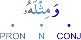 CONJ – prefixed conjunction wa (and) N – accusative masculine noun PRON – 3rd person masculine singular possessive pronoun الواو عاطفة اسم منصوب والهاء ضمير متصل في محل جر بالاضافة