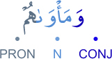 CONJ – prefixed conjunction wa (and) N – genitive masculine noun PRON – 3rd person masculine plural possessive pronoun الواو عاطفة اسم مجرور و«هم» ضمير متصل في محل جر بالاضافة