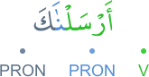 V – 1st person plural (form IV) perfect verb PRON – subject pronoun PRON – 2nd person masculine singular object pronoun فعل ماض و«نا» ضمير متصل في محل رفع فاعل والكاف ضمير متصل في محل نصب مفعول به
