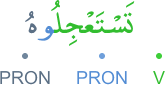 V – 2nd person masculine plural (form X) imperfect verb, jussive mood PRON – subject pronoun PRON – 3rd person masculine singular object pronoun فعل مضارع مجزوم والواو ضمير متصل في محل رفع فاعل والهاء ضمير متصل في محل نصب مفعول به