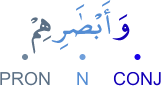 CONJ – prefixed conjunction wa (and) N – genitive masculine noun PRON – 3rd person masculine plural possessive pronoun الواو عاطفة اسم مجرور و«هم» ضمير متصل في محل جر بالاضافة