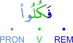 [ÆKL] [] [RZG] [] [ḪLL] [ŦYB] [ŞKR] [NAM] [] [] [KWN] [] [ABD̃] FKLWÆ MMÆ RZGKM ÆLLH ḪLÆLÆ ŦYBÆ WÆŞKRWÆ NAMT ÆLLH ÎN KNTM ÎYÆH TABD̃WN fekulū mimmā razeḳakumu llahu Halālen Tayyiben veşkurū niǎ'mete llahi in kuntum iyyāhu teǎ'budūne فكلوا مما رزقكم الله حلالا طيبا واشكروا نعمت الله إن كنتم إياه تعبدون [ا ك ل] [] [ر ز ق] [] [ح ل ل] [ط ي ب] [ش ك ر] [ن ع م] [] [] [ك و ن] [] [ع ب د]