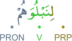 PRP – prefixed particle of purpose lām V – 1st person plural imperfect verb, subjunctive mood PRON – 3rd person masculine plural object pronoun اللام لام التعليل فعل مضارع منصوب و«هم» ضمير متصل في محل نصب مفعول به