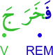 [ḢRC] [] [GWM] [] [ḪRB] [WḪY] [] [] [SBḪ] [BKR] [AŞW] FḢRC AL GWMH MN ÆLMḪRÆB FǼWḪ ÎLYHM ǼN SBḪWÆ BKRT WAŞYÆ feḣarace ǎlā ḳavmihi mine l-miHrābi fe evHā ileyhim en sebbiHū bukraten ve ǎşiyyen فخرج على قومه من المحراب فأوحى إليهم أن سبحوا بكرة وعشيا [خ ر ج] [] [ق و م] [] [ح ر ب] [و ح ي] [] [] [س ب ح] [ب ك ر] [ع ش و]