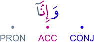 CONJ – prefixed conjunction wa (and) ACC – accusative particle PRON – 1st person plural object pronoun الواو عاطفة حرف نصب و«نا» ضمير متصل في محل نصب اسم «ان»