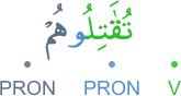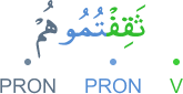 V – 2nd person masculine plural perfect verb PRON – subject pronoun PRON – 3rd person masculine plural object pronoun فعل ماض والتاء ضمير متصل في محل رفع فاعل و«هم» ضمير متصل في محل نصب مفعول به
