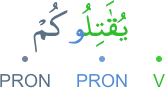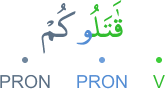 V – 3rd person masculine plural (form III) perfect verb PRON – subject pronoun PRON – 2nd person masculine plural object pronoun فعل ماض والواو ضمير متصل في محل رفع فاعل والكاف ضمير متصل في محل نصب مفعول به