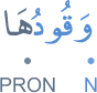 [] [] [FAL] [] [FAL] [WGY] [NWR] [] [WGD̃] [NWS] [ḪCR] [AD̃D̃] [KFR] FÎN LM TFALWÆ WLN TFALWÆ FÆTGWÆ ÆLNÆR ÆLTY WGWD̃HÆ ÆLNÆS WÆLḪCÆRT ǼAD̃T LLKÆFRYN fein lem tef'ǎlū velen tef'ǎlū fetteḳū n-nāra lletī veḳūduhā n-nāsu velHicāratu uǐddet lilkāfirīne فإن لم تفعلوا ولن تفعلوا فاتقوا النار التي وقودها الناس والحجارة أعدت للكافرين [] [] [ف ع ل] [] [ف ع ل] [و ق ي] [ن و ر] [] [و ق د] [ن و س] [ح ج ر] [ع د د] [ك ف ر]
