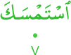 [] [KRH] [] [D̃YN] [] [BYN] [RŞD̃] [] [ĞWY] [] [KFR] [ŦĞY] [ÆMN] [] [] [MSK] [ARW] [WS̃G] [] [FṦM] [] [] [SMA] [ALM] LÆ ÎKRÆH FY ÆLD̃YN GD̃ TBYN ÆLRŞD̃ MN ÆLĞY FMN YKFR BÆLŦÆĞWT WYÙMN BÆLLH FGD̃ ÆSTMSK BÆLARWT ÆLWS̃G LÆ ÆNFṦÆM LHÆ WÆLLH SMYA ALYM lā ikrāhe fī d-dīni ḳad tebeyyene r-ruşdu mine l-ğayyi femen yekfur biT-Tāğūti ve yu'min billahi feḳadi stemseke bil-ǔrveti l-vuṧḳā lā nfiSāme lehā vallahu semīǔn ǎlīmun لا إكراه في الدين قد تبين الرشد من الغي فمن يكفر بالطاغوت ويؤمن بالله فقد استمسك بالعروة الوثقى لا انفصام لها والله سميع عليم [] [ك ر ه] [] [د ي ن] [] [ب ي ن] [ر ش د] [] [غ و ي] [] [ك ف ر] [ط غ ي] [ا م ن] [] [] [م س ك] [ع ر و] [و ث ق] [] [ف ص م] [] [] [س م ع] [ع ل م]