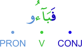 CONJ – prefixed conjunction fa (and) V – 3rd person masculine plural perfect verb PRON – subject pronoun الفاء عاطفة فعل ماض والواو ضمير متصل في محل رفع فاعل