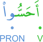 [] [ḪSS] [BÆS] [] [] [] [RKŽ] FLMÆ ǼḪSWÆ BǼSNÆ ÎZ̃Æ HM MNHÆ YRKŽWN felemmā eHassū be'senā iƶā hum minhā yerkuDūne فلما أحسوا بأسنا إذا هم منها يركضون [] [ح س س] [ب ا س] [] [] [] [ر ك ض]