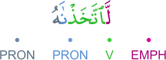 EMPH – emphatic prefix lām V – 1st person plural (form VIII) perfect verb PRON – subject pronoun PRON – 3rd person masculine singular object pronoun اللام لام التوكيد فعل ماض و«نا» ضمير متصل في محل رفع فاعل والهاء ضمير متصل في محل نصب مفعول به