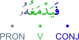 CONJ – prefixed conjunction fa (and) V – 3rd person masculine singular imperfect verb PRON – 3rd person masculine singular object pronoun الفاء عاطفة فعل مضارع والهاء ضمير متصل في محل نصب مفعول به
