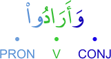 CONJ – prefixed conjunction wa (and) V – 3rd person masculine plural (form IV) perfect verb PRON – subject pronoun الواو عاطفة فعل ماض والواو ضمير متصل في محل رفع فاعل
