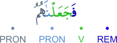 REM – prefixed resumption particle V – 1st person plural perfect verb PRON – subject pronoun PRON – 3rd person masculine plural object pronoun الفاء استئنافية فعل ماض و«نا» ضمير متصل في محل رفع فاعل و«هم» ضمير متصل في محل نصب مفعول به