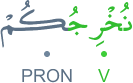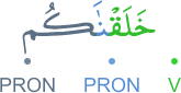 V – 1st person plural perfect verb PRON – subject pronoun PRON – 2nd person masculine plural object pronoun فعل ماض و«نا» ضمير متصل في محل رفع فاعل والكاف ضمير متصل في محل نصب مفعول به