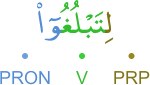 PRP – prefixed particle of purpose lām V – 2nd person masculine plural imperfect verb, subjunctive mood PRON – subject pronoun اللام لام التعليل فعل مضارع منصوب والواو ضمير متصل في محل رفع فاعل