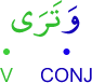 CONJ – prefixed conjunction wa (and) V – 3rd person feminine singular perfect verb الواو عاطفة فعل ماض