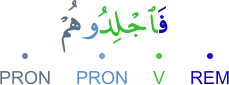 [] [RMY] [ḪṦN] [] [] [ÆTY] [RBA] [ŞHD̃] [CLD̃] [S̃MN] [CLD̃] [] [GBL] [] [ŞHD̃] [ÆBD̃] [] [] [FSG] WÆLZ̃YN YRMWN ÆLMḪṦNÆT S̃M LM YǼTWÆ BǼRBAT ŞHD̃ÆÙ FÆCLD̃WHM S̃MÆNYN CLD̃T WLÆ TGBLWÆ LHM ŞHÆD̃T ǼBD̃Æ WǼWLÙK HM ÆLFÆSGWN velleƶīne yermūne l-muHSanāti ṧumme lem ye'tū bierbeǎti şuhedā'e feclidūhum ṧemānīne celdeten ve lā teḳbelū lehum şehādeten ebeden ve ulāike humu l-fāsiḳūne والذين يرمون المحصنات ثم لم يأتوا بأربعة شهداء فاجلدوهم ثمانين جلدة ولا تقبلوا لهم شهادة أبدا وأولئك هم الفاسقون [] [ر م ي] [ح ص ن] [] [] [ا ت ي] [ر ب ع] [ش ه د] [ج ل د] [ث م ن] [ج ل د] [] [ق ب ل] [] [ش ه د] [ا ب د] [] [] [ف س ق]