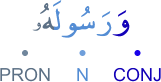 CONJ – prefixed conjunction wa (and) N – accusative masculine noun PRON – 3rd person masculine singular possessive pronoun الواو عاطفة اسم منصوب والهاء ضمير متصل في محل جر بالاضافة