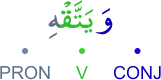 CONJ – prefixed conjunction wa (and) V – 3rd person masculine singular (form VIII) imperfect verb, jussive mood PRON – 3rd person masculine singular object pronoun الواو عاطفة فعل مضارع مجزوم والهاء ضمير متصل في محل نصب مفعول به