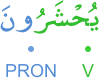 [] [ḪŞR] [] [WCH] [] [] [] [ŞRR] [KWN] [ŽLL] [SBL] ÆLZ̃YN YḪŞRWN AL WCWHHM ÎL CHNM ǼWLÙK ŞR MKÆNÆ WǼŽL SBYLÆ elleƶīne yuHşerūne ǎlā vucūhihim ilā cehenneme ulāike şerrun mekānen ve eDellu sebīlen الذين يحشرون على وجوههم إلى جهنم أولئك شر مكانا وأضل سبيلا [] [ح ش ر] [] [و ج ه] [] [] [] [ش ر ر] [ك و ن] [ض ل ل] [س ب ل]