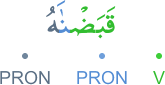 V – 1st person plural perfect verb PRON – subject pronoun PRON – 3rd person masculine singular object pronoun فعل ماض و«نا» ضمير متصل في محل رفع فاعل والهاء ضمير متصل في محل نصب مفعول به