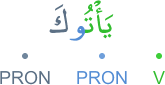 [ÆTY] [KLL] [SḪR] [ALM] YǼTWK BKL SḪÆR ALYM ye'tūke bikulli seHHārin ǎlīmin يأتوك بكل سحار عليم [ا ت ي] [ك ل ل] [س ح ر] [ع ل م]
