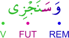 [] [KWN] [NFS] [] [MWT] [] [ÆZ̃N] [] [KTB] [ÆCL] [] [RWD̃] [S̃WB] [D̃NW] [ÆTY] [] [] [RWD̃] [S̃WB] [ÆḢR] [ÆTY] [] [CZY] [ŞKR] WMÆ KÆN LNFS ǼN TMWT ÎLÆ BÎZ̃N ÆLLH KTÆBÆ MÙCLÆ WMN YRD̃ S̃WÆB ÆLD̃NYÆ NÙTH MNHÆ WMN YRD̃ S̃WÆB ÆL ËḢRT NÙTH MNHÆ WSNCZY ÆLŞÆKRYN ve mā kāne linefsin en temūte illā biiƶni llahi kitāben mu'eccelen ve men yurid ṧevābe d-dunyā nu'tihi minhā ve men yurid ṧevābe l-āḣirati nu'tihi minhā ve seneczī ş-şākirīne وما كان لنفس أن تموت إلا بإذن الله كتابا مؤجلا ومن يرد ثواب الدنيا نؤته منها ومن يرد ثواب الآخرة نؤته منها وسنجزي الشاكرين [] [ك و ن] [ن ف س] [] [م و ت] [] [ا ذ ن] [] [ك ت ب] [ا ج ل] [] [ر و د] [ث و ب] [د ن و] [ا ت ي] [] [] [ر و د] [ث و ب] [ا خ ر] [ا ت ي] [] [ج ز ي] [ش ك ر]