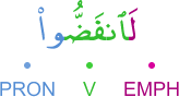 [] [RḪM] [] [] [LYN] [] [] [KWN] [FƵƵ] [ĞLƵ] [GLB] [FŽŽ] [] [ḪWL] [AFW] [] [ĞFR] [] [ŞWR] [] [ÆMR] [] [AZM] [WKL] [] [] [] [] [ḪBB] [WKL] FBMÆ RḪMT MN ÆLLH LNT LHM WLW KNT FƵÆ ĞLYƵ ÆLGLB LÆNFŽWÆ MN ḪWLK FÆAF ANHM WÆSTĞFR LHM WŞÆWRHM FY ÆLǼMR FÎZ̃Æ AZMT FTWKL AL ÆLLH ÎN ÆLLH YḪB ÆLMTWKLYN febimā raHmetin mine llahi linte lehum velev kunte feZZen ğalīZe l-ḳalbi lānfeDDū min Havlike feǎ'fu ǎnhum vesteğfir lehum ve şāvirhum fī l-emri feiƶā ǎzemte fetevekkel ǎlā llahi inne llahe yuHibbu l-mutevekkilīne فبما رحمة من الله لنت لهم ولو كنت فظا غليظ القلب لانفضوا من حولك فاعف عنهم واستغفر لهم وشاورهم في الأمر فإذا عزمت فتوكل على الله إن الله يحب المتوكلين [] [ر ح م] [] [] [ل ي ن] [] [] [ك و ن] [ف ظ ظ] [غ ل ظ] [ق ل ب] [ف ض ض] [] [ح و ل] [ع ف و] [] [غ ف ر] [] [ش و ر] [] [ا م ر] [] [ع ز م] [و ك ل] [] [] [] [] [ح ب ب] [و ك ل]