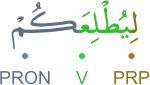[] [KWN] [] [WZ̃R] [ÆMN] [] [] [] [] [] [MYZ] [ḢBS̃] [] [ŦYB] [] [KWN] [] [ŦLA] [] [ĞYB] [] [] [CBY] [] [RSL] [] [ŞYÆ] [ÆMN] [] [RSL] [] [ÆMN] [WGY] [] [ÆCR] [AƵM] MÆ KÆN ÆLLH LYZ̃R ÆLMÙMNYN AL MÆ ǼNTM ALYH ḪT YMYZ ÆLḢBYS̃ MN ÆLŦYB WMÆ KÆN ÆLLH LYŦLAKM AL ÆLĞYB WLKN ÆLLH YCTBY MN RSLH MN YŞÆÙ F ËMNWÆ BÆLLH WRSLH WÎN TÙMNWÆ WTTGWÆ FLKM ǼCR AƵYM mā kāne llahu liyeƶera l-mu'minīne ǎlā mā entum ǎleyhi Hattā yemīze l-ḣabīṧe mine T-Tayyibi ve mā kāne llahu liyuTliǎkum ǎlā l-ğaybi velākinne llahe yectebī min rusulihi men yeşā'u fe āminū billahi ve rusulihi ve in tu'minū ve tetteḳū felekum ecrun ǎZīmun ما كان الله ليذر المؤمنين على ما أنتم عليه حتى يميز الخبيث من الطيب وما كان الله ليطلعكم على الغيب ولكن الله يجتبي من رسله من يشاء فآمنوا بالله ورسله وإن تؤمنوا وتتقوا فلكم أجر عظيم [] [ك و ن] [] [و ذ ر] [ا م ن] [] [] [] [] [] [م ي ز] [خ ب ث] [] [ط ي ب] [] [ك و ن] [] [ط ل ع] [] [غ ي ب] [] [] [ج ب ي] [] [ر س ل] [] [ش ي ا] [ا م ن] [] [ر س ل] [] [ا م ن] [و ق ي] [] [ا ج ر] [ع ظ م]