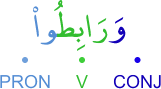 CONJ – prefixed conjunction wa (and) V – 2nd person masculine plural (form III) imperative verb PRON – subject pronoun الواو عاطفة فعل أمر والواو ضمير متصل في محل رفع فاعل
