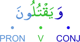 [] [] [KFR] [ÆYY] [] [GTL] [NBÆ] [ĞYR] [ḪGG] [GTL] [] [ÆMR] [GSŦ] [] [NWS] [BŞR] [AZ̃B] [ÆLM] ÎN ÆLZ̃YN YKFRWN B ËYÆT ÆLLH WYGTLWN ÆLNBYYN BĞYR ḪG WYGTLWN ÆLZ̃YN YǼMRWN BÆLGSŦ MN ÆLNÆS FBŞRHM BAZ̃ÆB ǼLYM inne elleƶīne yekfurūne biāyāti llahi ve yeḳtulūne n-nebiyyīne biğayri Haḳḳin ve yeḳtulūne elleƶīne ye'murūne bil-ḳisTi mine n-nāsi febeşşirhum biǎƶābin elīmin إن الذين يكفرون بآيات الله ويقتلون النبيين بغير حق ويقتلون الذين يأمرون بالقسط من الناس فبشرهم بعذاب أليم [] [] [ك ف ر] [ا ي ي] [] [ق ت ل] [ن ب ا] [غ ي ر] [ح ق ق] [ق ت ل] [] [ا م ر] [ق س ط] [] [ن و س] [ب ش ر] [ع ذ ب] [ا ل م]