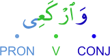 CONJ – prefixed conjunction wa (and) V – 2nd person feminine singular imperative verb PRON – subject pronoun الواو عاطفة فعل أمر والياء ضمير متصل في محل رفع فاعل