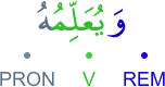REM – prefixed resumption particle V – 3rd person masculine singular (form II) imperfect verb PRON – 3rd person masculine singular object pronoun الواو استئنافية فعل مضارع والهاء ضمير متصل في محل نصب مفعول به