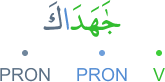 V – 3rd person masculine dual (form III) perfect verb PRON – subject pronoun PRON – 2nd person masculine singular object pronoun فعل ماض والألف ضمير متصل في محل رفع فاعل والكاف ضمير متصل في محل نصب مفعول به