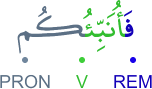 REM – prefixed resumption particle V – 1st person singular (form II) imperfect verb PRON – 2nd person masculine plural object pronoun الفاء استئنافية فعل مضارع والكاف ضمير متصل في محل نصب مفعول به