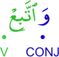 [TBA] [] [WḪY] [] [] [RBB] [] [] [KWN] [] [AML] [ḢBR] WÆTBA MÆ YWḪ ÎLYK MN RBK ÎN ÆLLH KÆN BMÆ TAMLWN ḢBYRÆ vettebiǎ' mā yūHā ileyke min rabbike inne llahe kāne bimā teǎ'melūne ḣabīran واتبع ما يوحى إليك من ربك إن الله كان بما تعملون خبيرا [ت ب ع] [] [و ح ي] [] [] [ر ب ب] [] [] [ك و ن] [] [ع م ل] [خ ب ر]