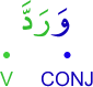 [RD̃D̃] [] [] [KFR] [ĞYƵ] [] [NYL] [ḢYR] [KFY] [] [ÆMN] [GTL] [KWN] [] [GWY] [AZZ] WRD̃ ÆLLH ÆLZ̃YN KFRWÆ BĞYƵHM LM YNÆLWÆ ḢYRÆ WKF ÆLLH ÆLMÙMNYN ÆLGTÆL WKÆN ÆLLH GWYÆ AZYZÆ ve radde llahu elleƶīne keferū biğayZihim lem yenālū ḣayran ve kefā llahu l-mu'minīne l-ḳitāle ve kāne llahu ḳaviyyen ǎzīzen ورد الله الذين كفروا بغيظهم لم ينالوا خيرا وكفى الله المؤمنين القتال وكان الله قويا عزيزا [ر د د] [] [] [ك ف ر] [غ ي ظ] [] [ن ي ل] [خ ي ر] [ك ف ي] [] [ا م ن] [ق ت ل] [ك و ن] [] [ق و ي] [ع ز ز]