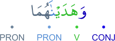 [HD̃Y] [ṦRŦ] [GWM] WHD̃YNÆHMÆ ÆLṦRÆŦ ÆLMSTGYM ve hedeynāhumā S-SirāTa l-musteḳīme وهديناهما الصراط المستقيم [ه د ي] [ص ر ط] [ق و م]