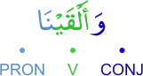 CONJ – prefixed conjunction wa (and) V – 1st person plural (form IV) perfect verb PRON – subject pronoun الواو عاطفة فعل ماض و«نا» ضمير متصل في محل رفع فاعل