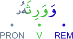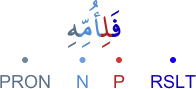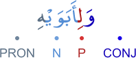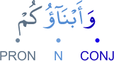 CONJ – prefixed conjunction wa (and) N – nominative masculine plural noun PRON – 2nd person masculine plural possessive pronoun الواو عاطفة اسم مرفوع والكاف ضمير متصل في محل جر بالاضافة